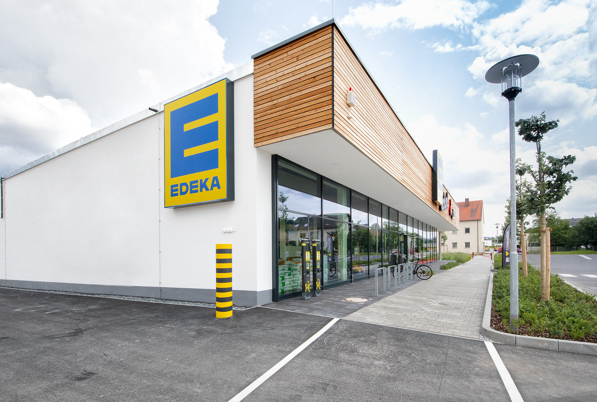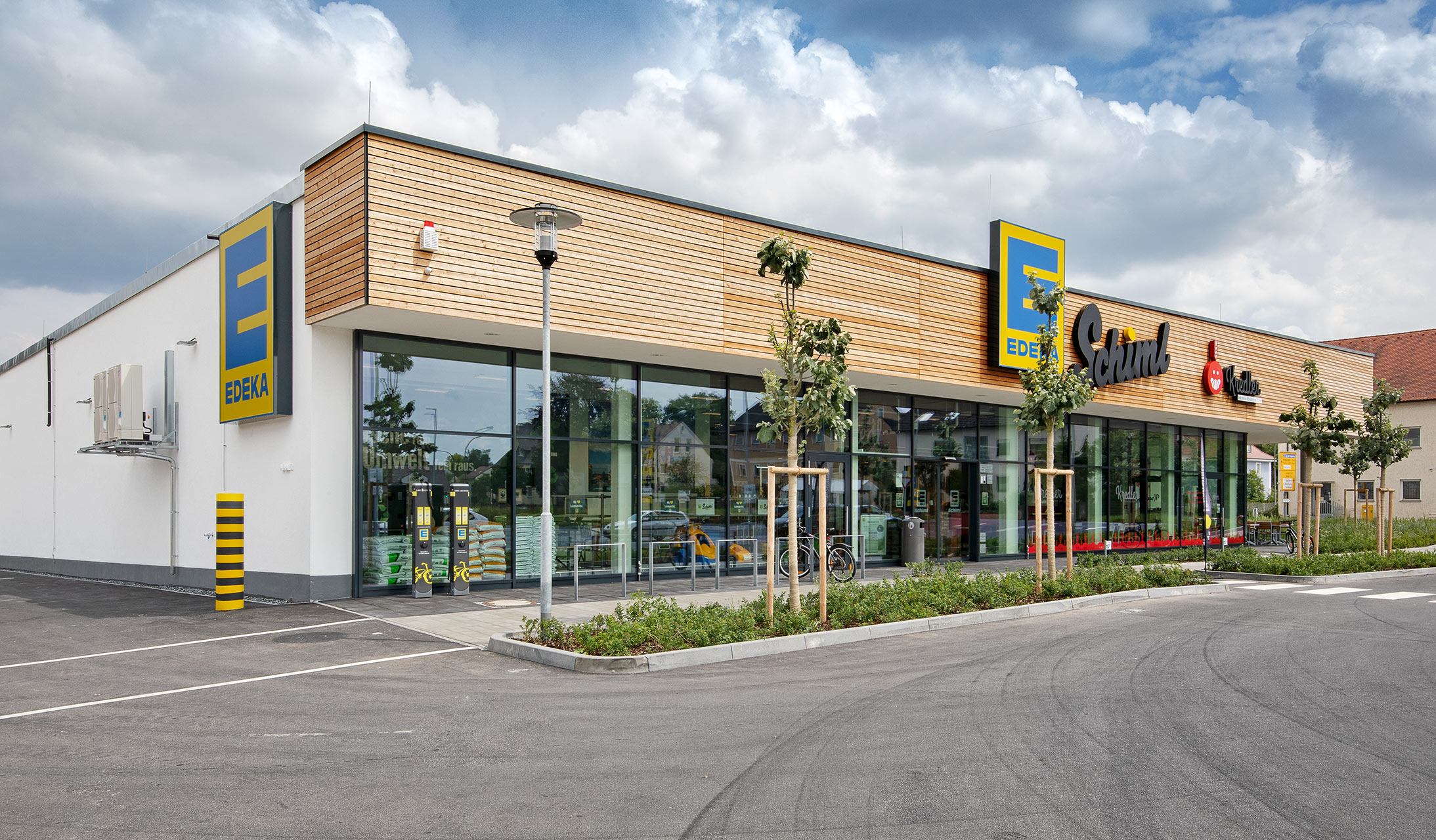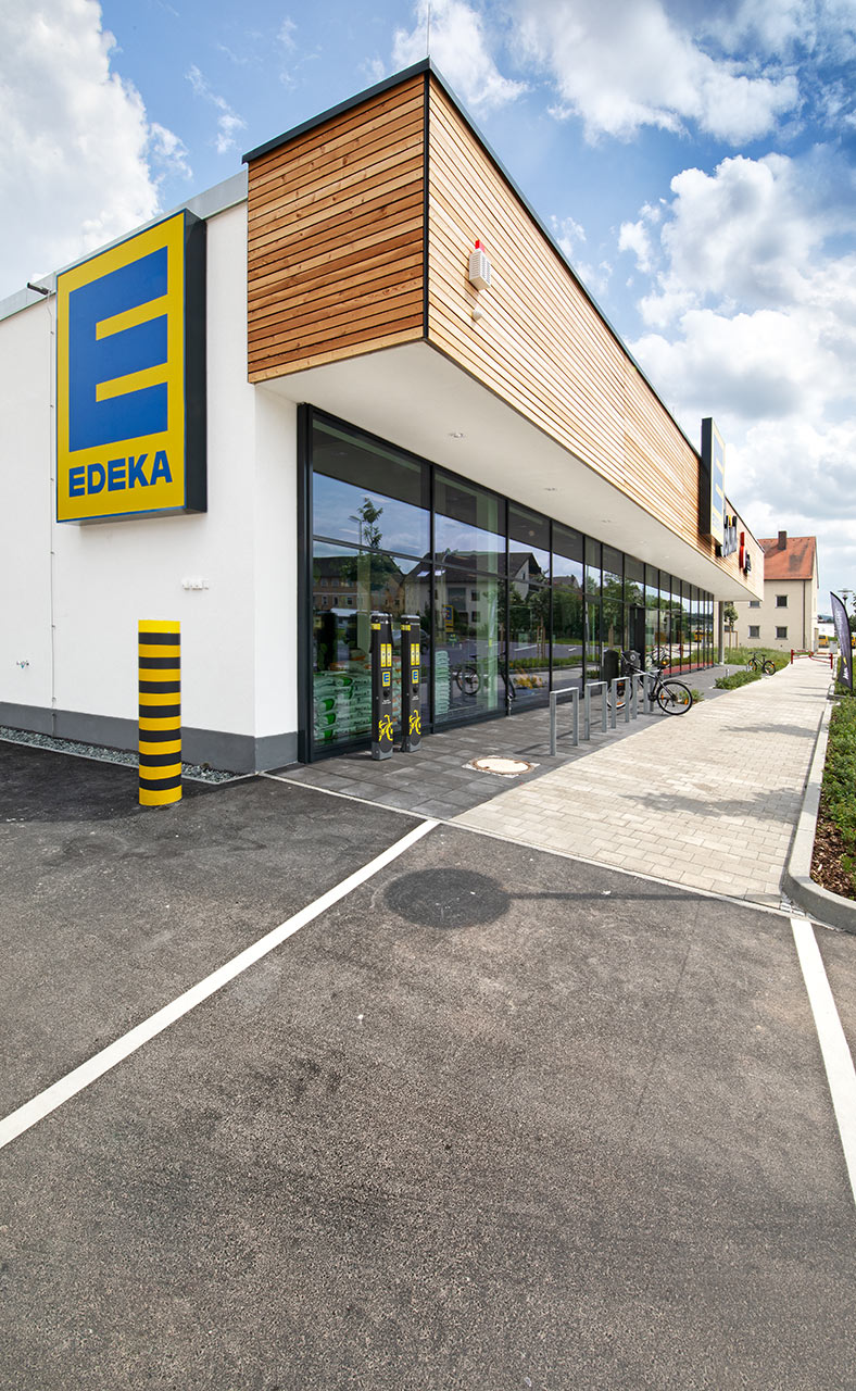 Neuer EDEKA in Hirschau. Die Holzfassade und das gesamte Außenbild zeigen auch hier: EDEKA liebt Lebensmittel, aber auch Architektur – und das ist bei den neuen Märkten gut zu erkennen.