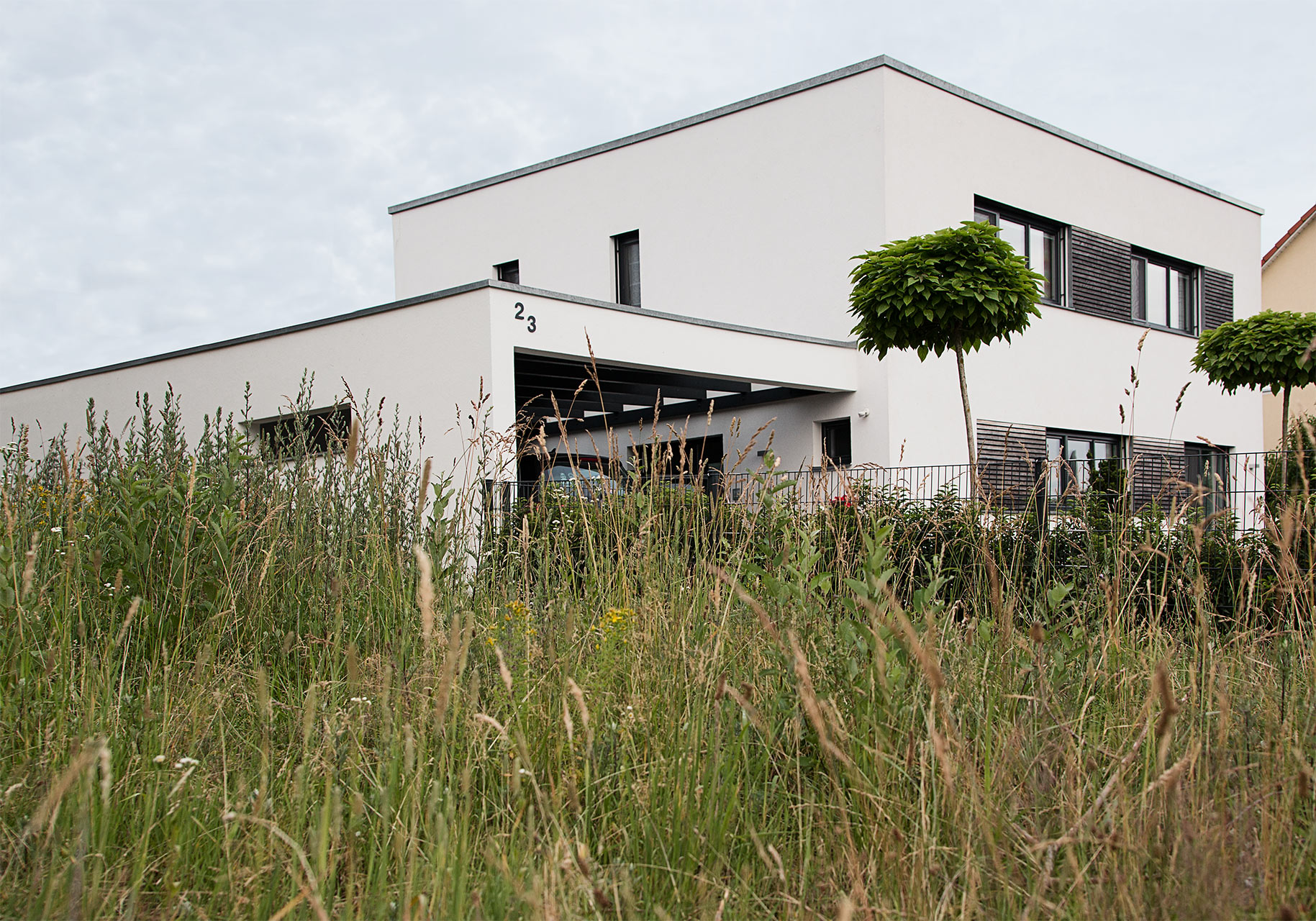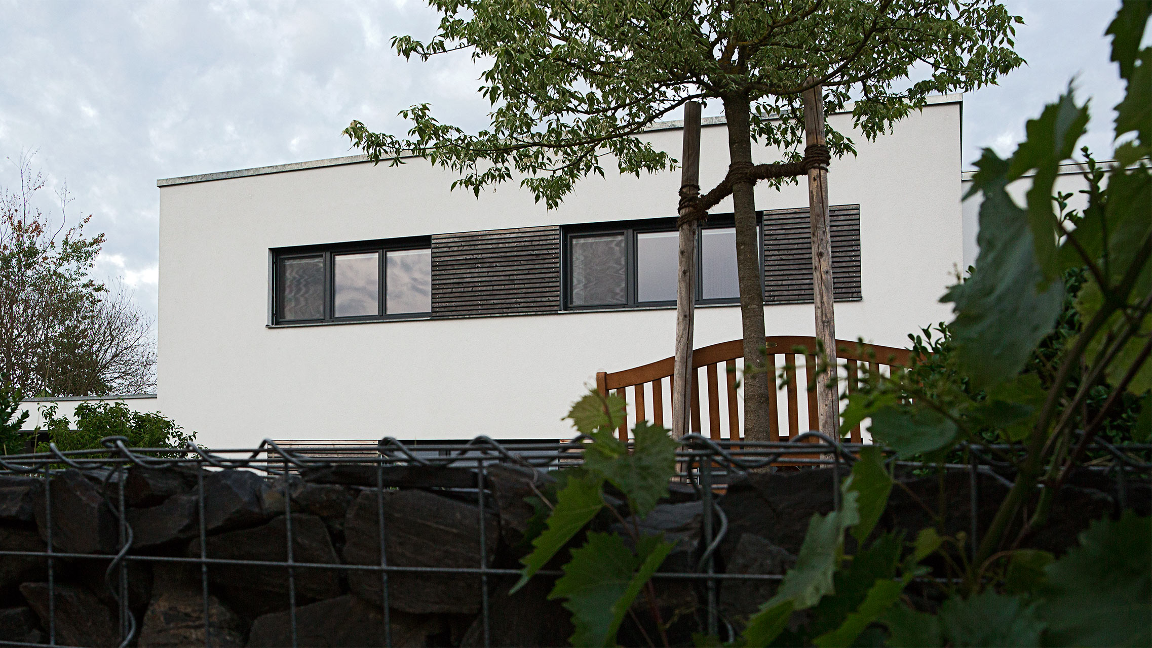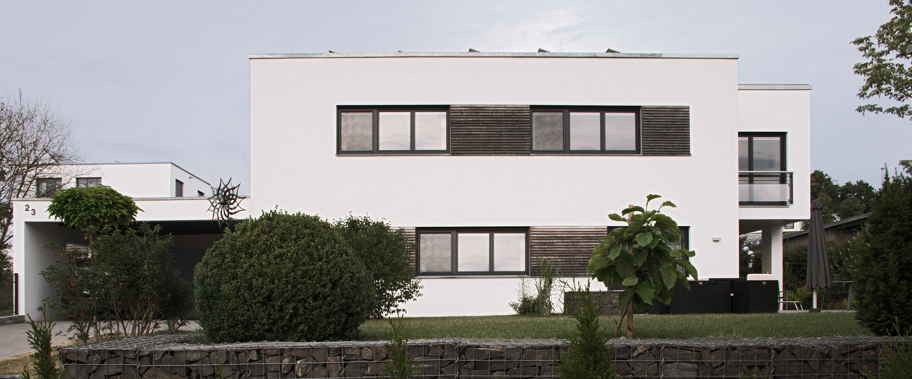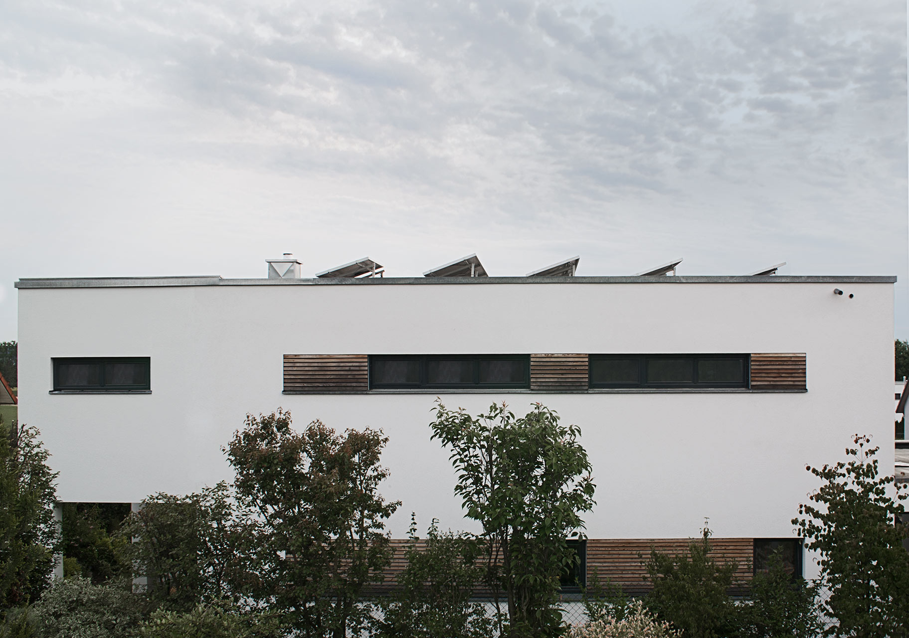 Ausgestattet mit einer hocheffizienten Wärmepumpe, welche mittels Soleflüssigkeit nach Tiefbohrungen dem Erdreich das ganze Jahr über Energie entzieht, um die Energiekosten auf ein Minimum zu reduzieren. Später ergänzt durch einen Anbau in Holzbauweise im Obergeschoß, der zugleich als Terrassen-Überdachung dient.